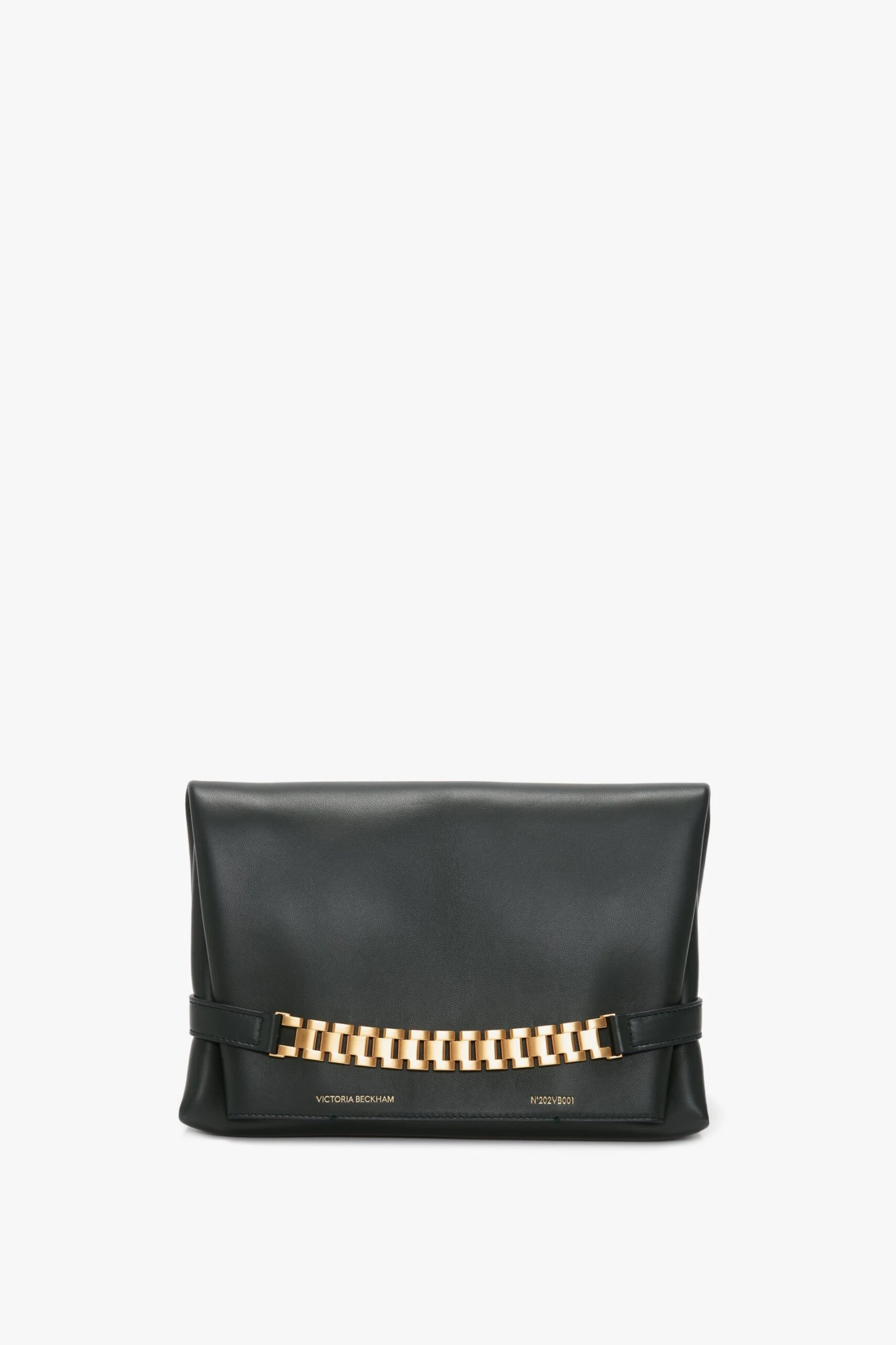 With its generous size, envelope design and soft structure, the Chain Pouch bag is a tactile style. In classic black, the gold-tone hardware makes for a striking detail, drawing inspiration from masculine watch straps and referencing jewellery seen in the collection.