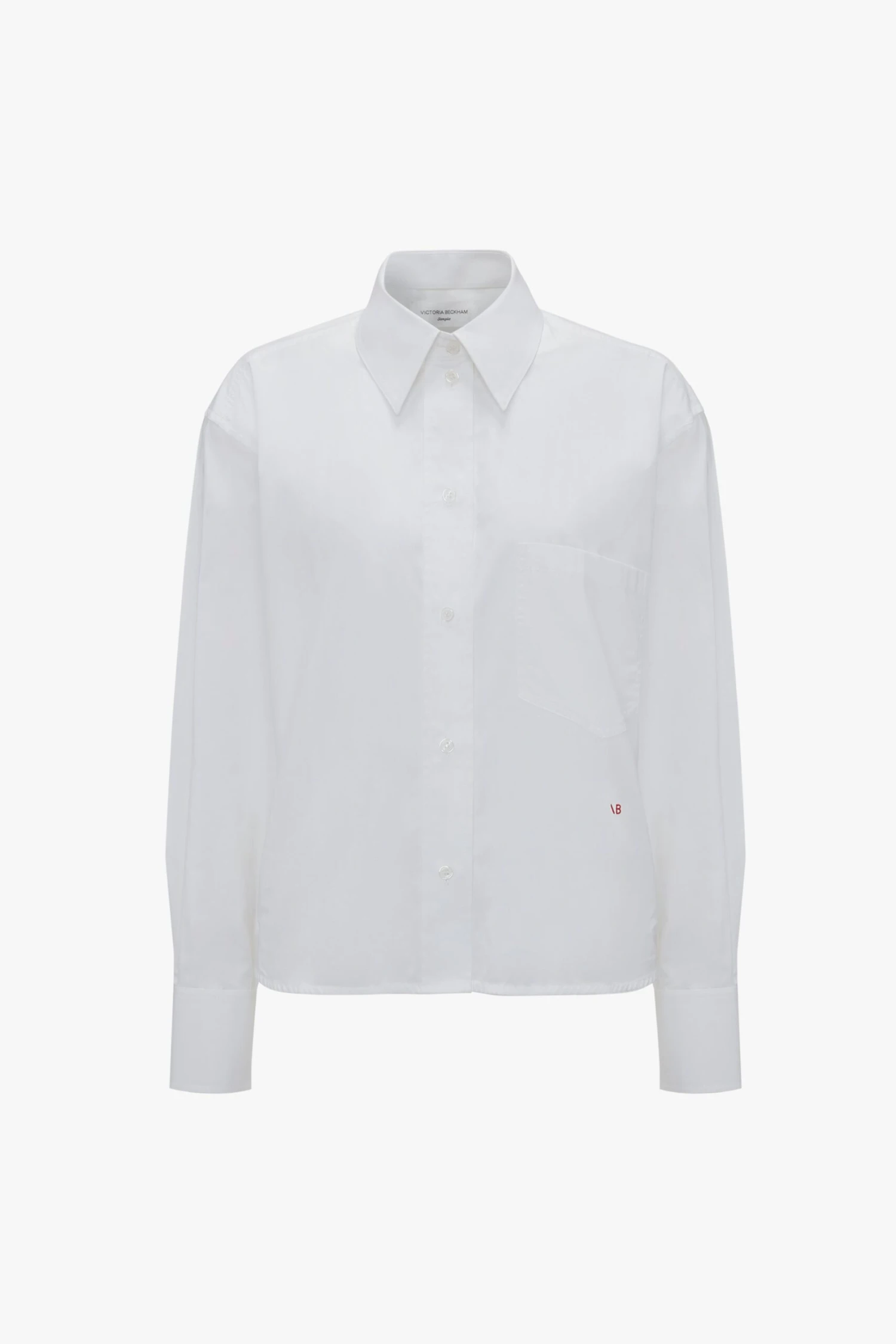 Signature shirting is part of the Victoria Beckham brand DNA. Discreet but elevated detailing defines this contemporary take on the classic white shirt. Crisp pleating along both sleeves creates architectural points of interest, while a contrasting VB monogram in red stitching adds sophisticated polish.