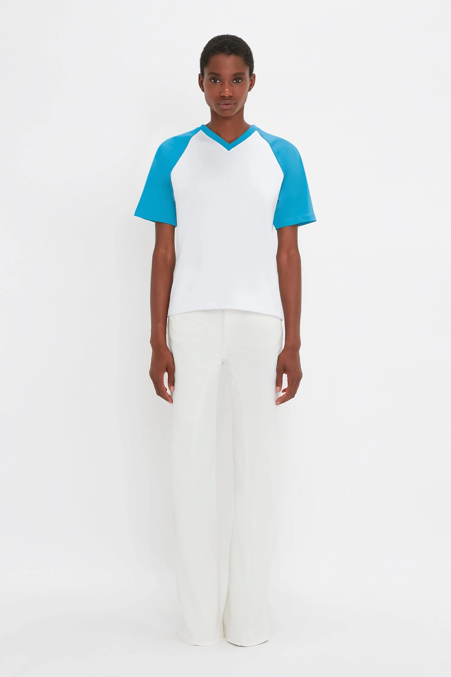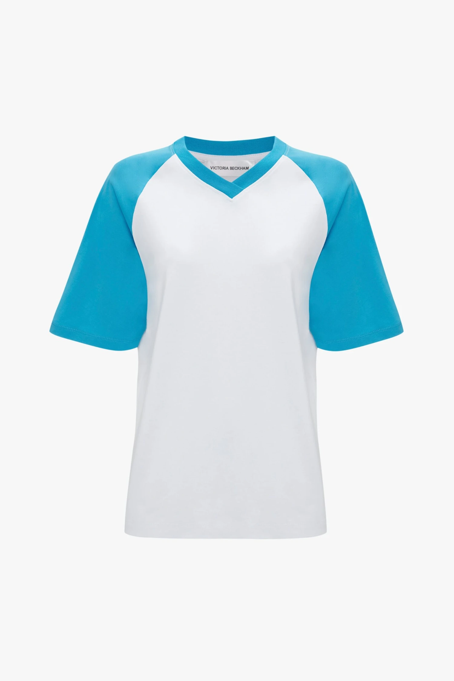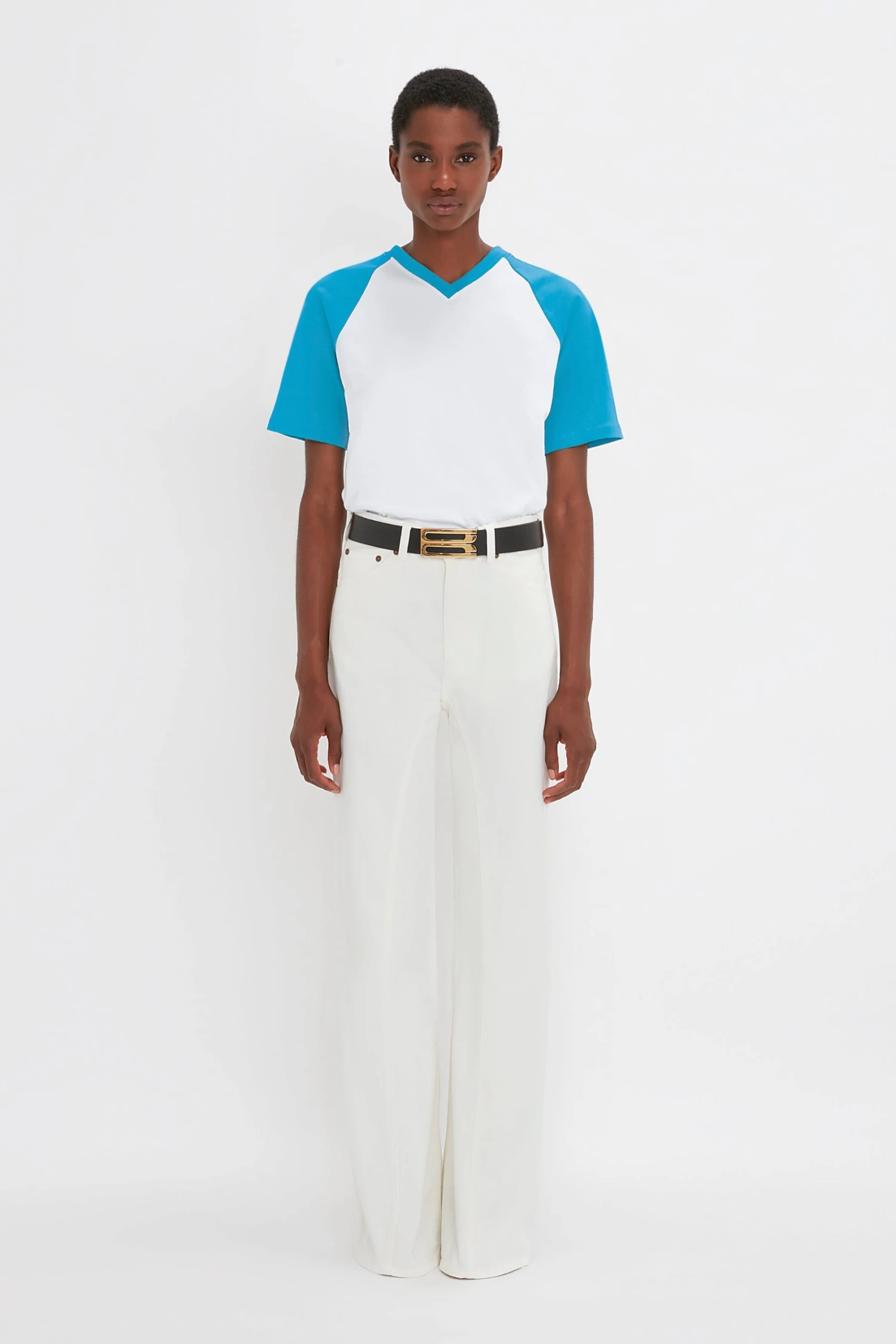 Crafted from a tactile 100% organic cotton, this Football T-shirt in Blue has a V-neckline and short raglan sleeves for ease of movement. A flock print VBeckham logo adorns the back for a playful finishing touch.
