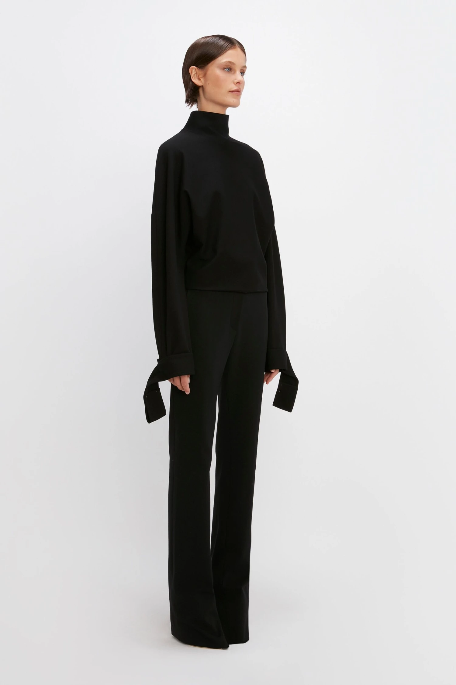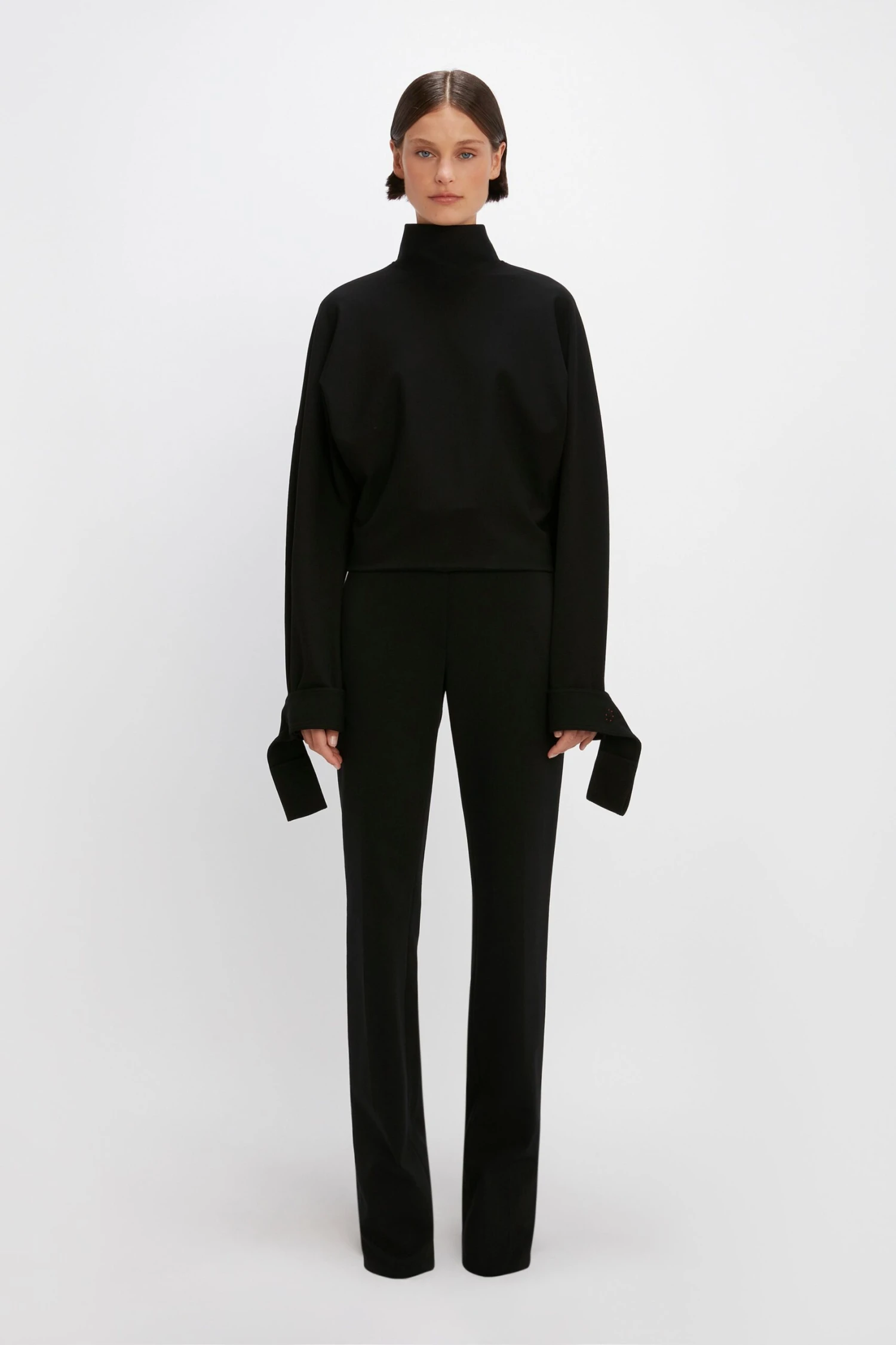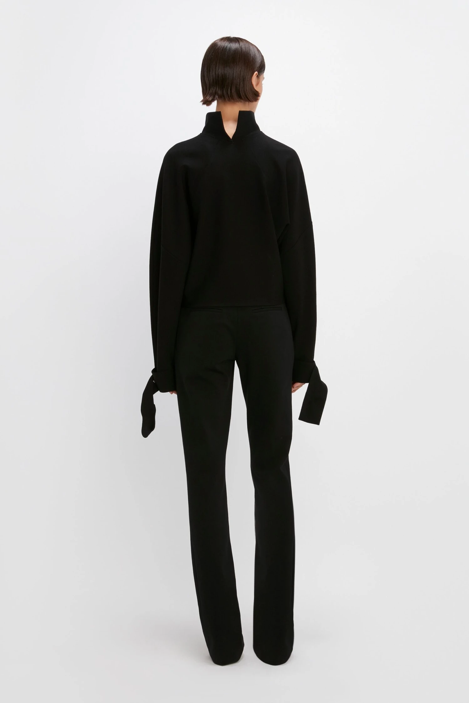 Our signature Ponti fabric is a compact jersey with a little stretch, making it a comfortable option that doesn’t sacrifice on style. Fitting high-waisted, with a neat side zip and straight, long leg – they’re designed to gather a little at the hem. Made in black, they’re endlessly versatile. Pair with the coordinating Tie Sleeve Top, or with this season’s block colour knitwear.