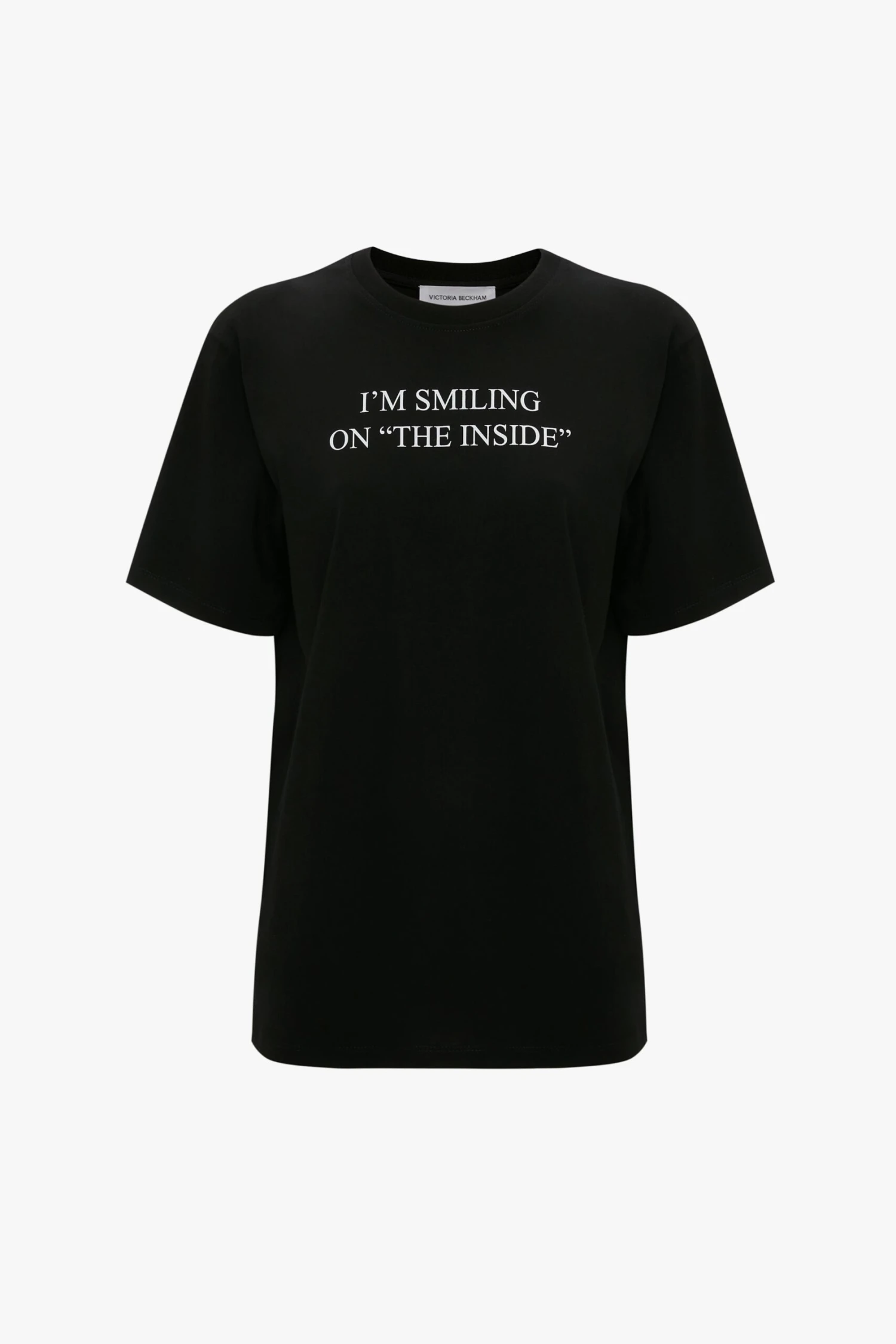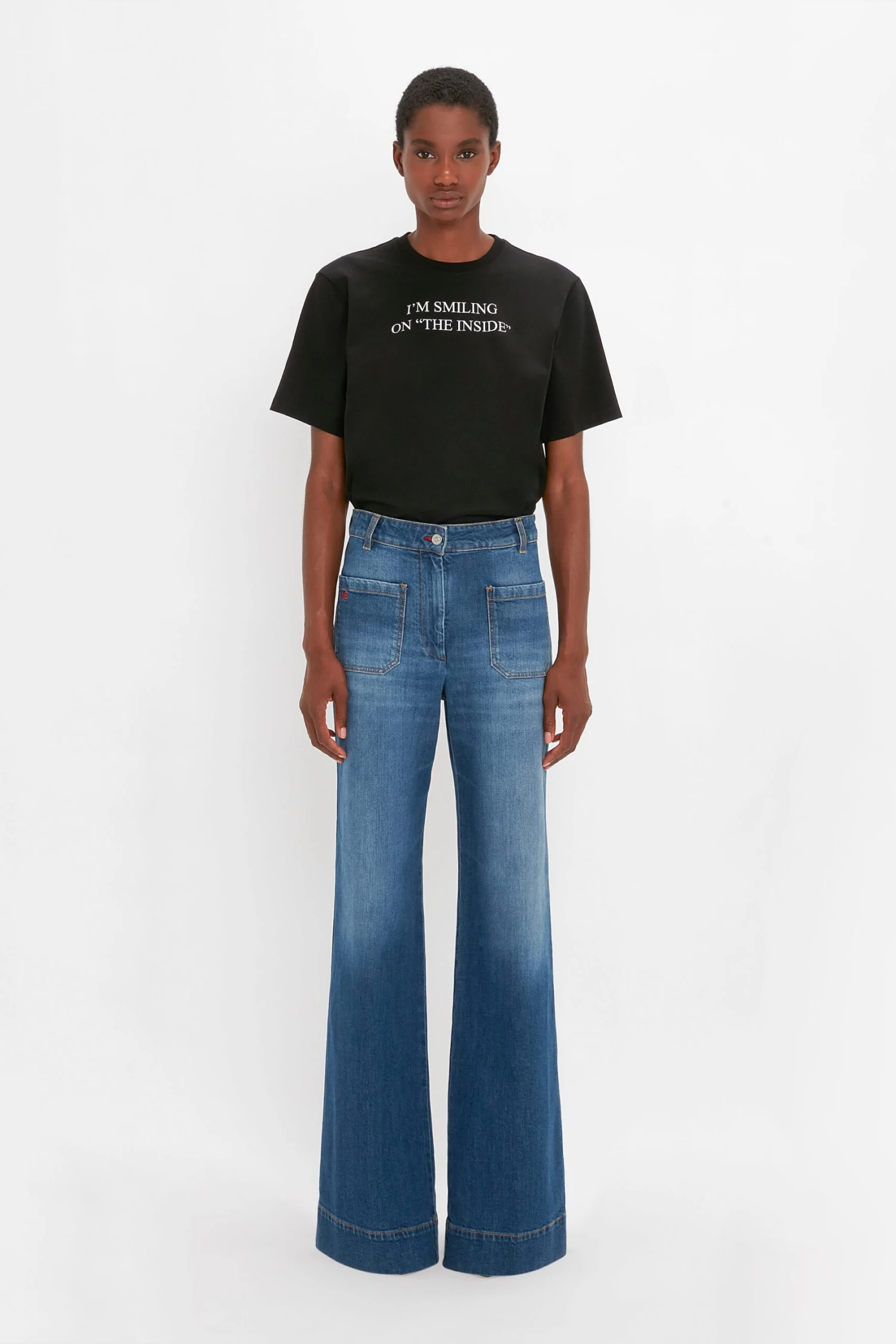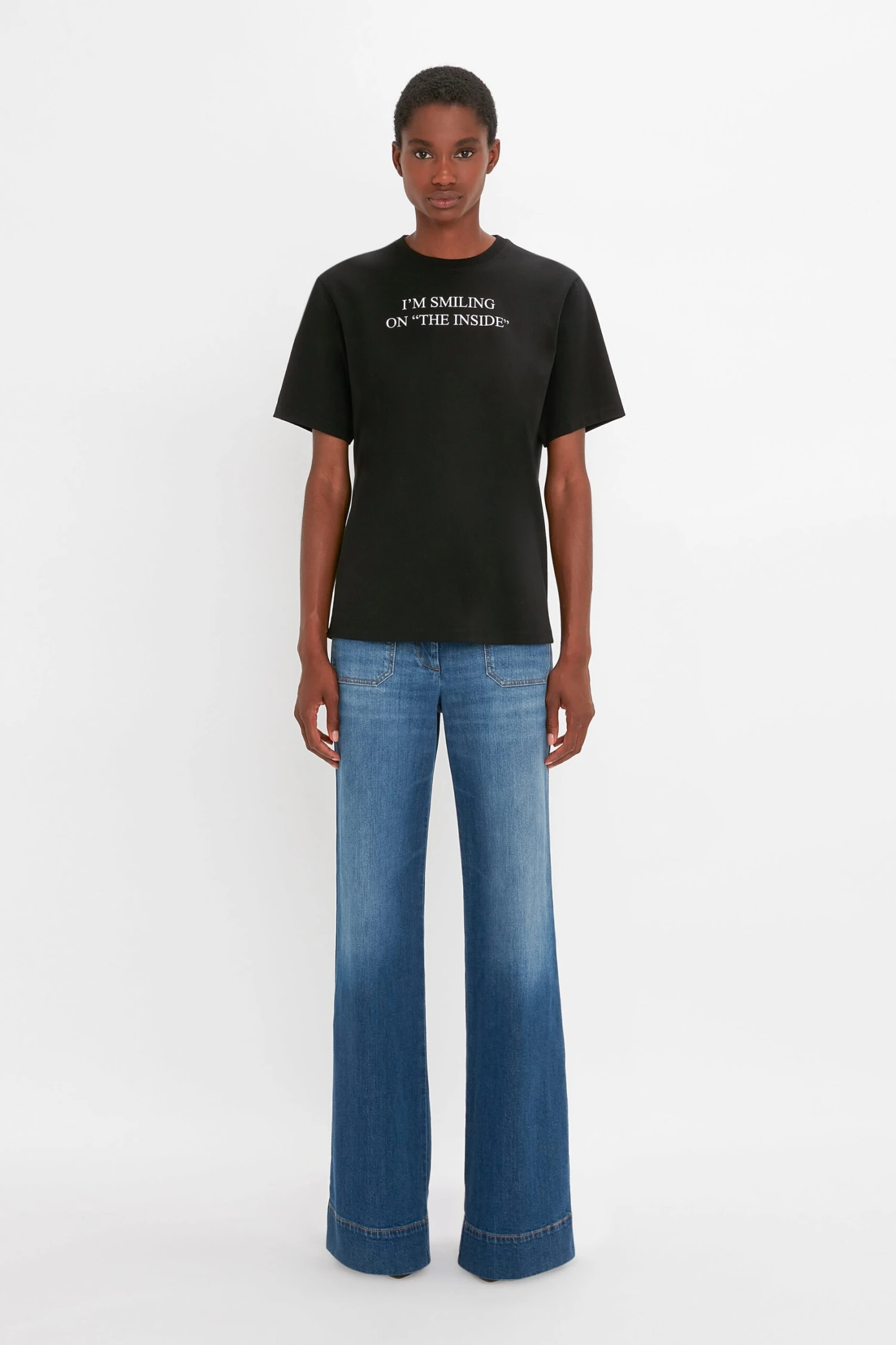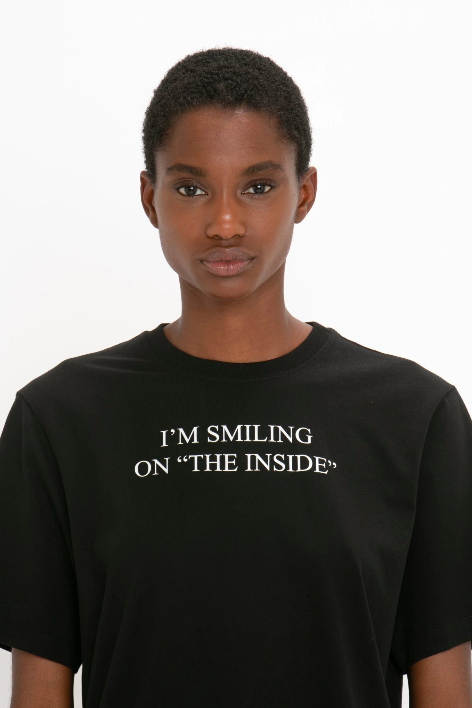 Made from soft organic cotton, the ‘I’m Smiling on the Inside’ Slogan T-Shirt embodies the brand’s palyful side. With loose fit sleeves, dropped shoulder seams and a classic crew neckline, it has a relaxed but refined fit. Simple but elevated denim completes the look.