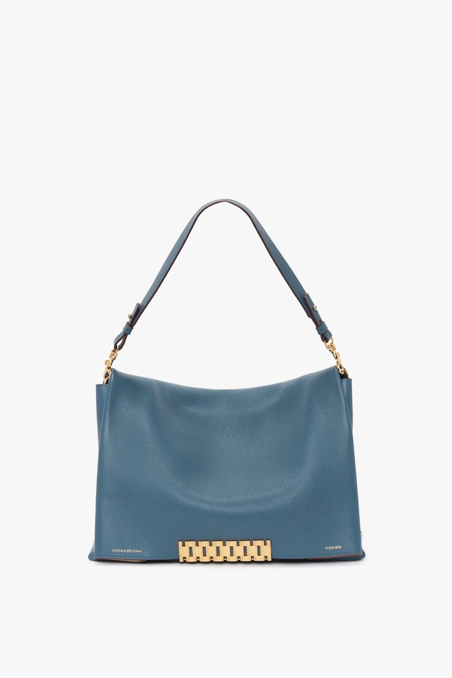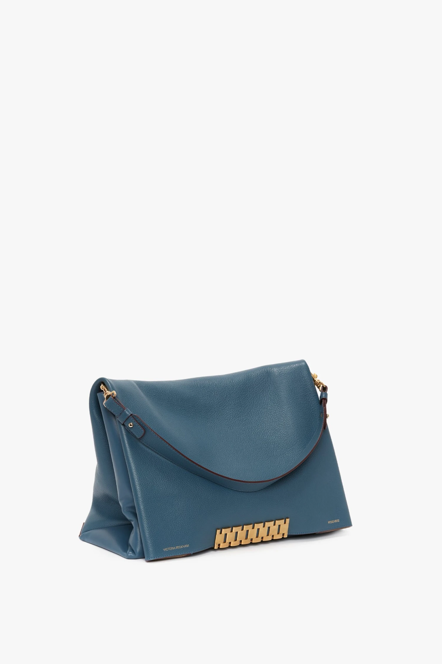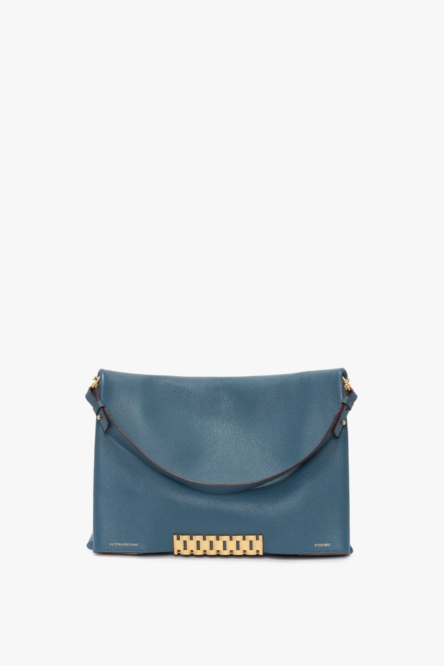 This extra-large version of the Chain Pouch has a timeless sophistication. Reworked in cornflower blue for the new season, features include signature gold-tone hardware and two internal compartments with leather divide. The front flap folds neatly into the strap, which also doubles a wristlet for versatility.