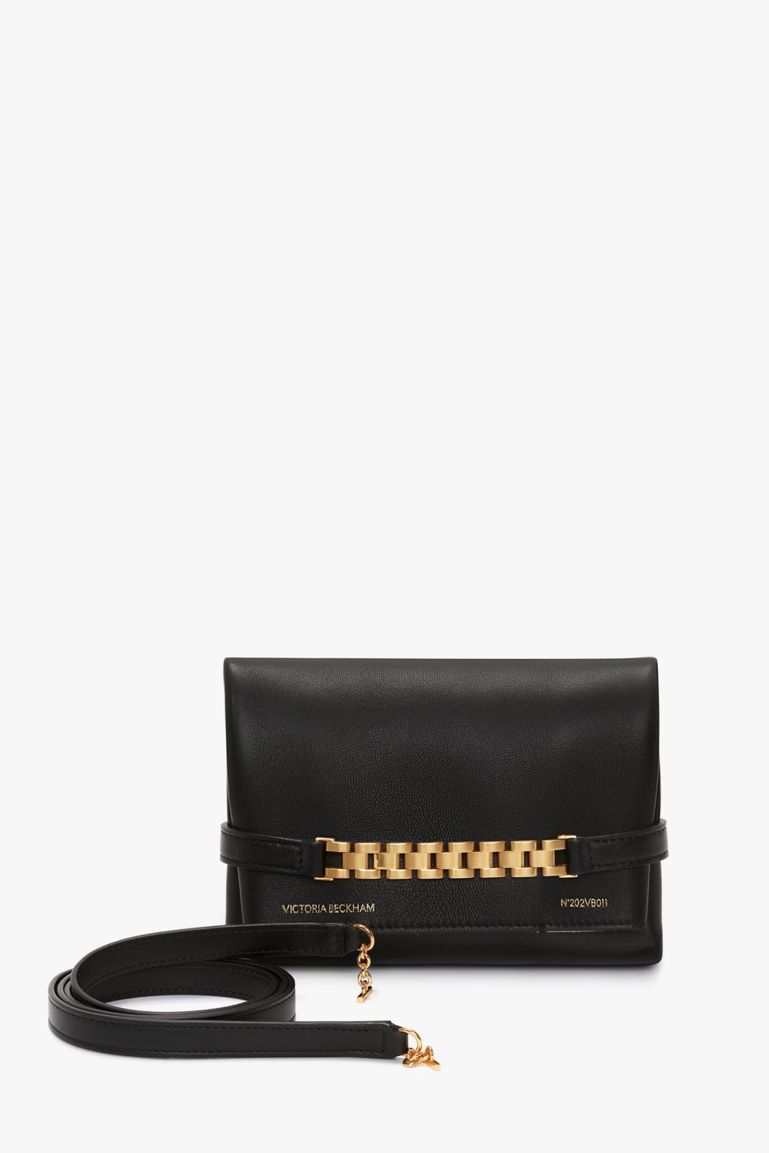 In classic black, the gold-tone watch strap detail of the Mini Chain Pouch makes for a striking detail. Reworked with a long strap, the Mini Chain Pouch offers improved functionality, allowing for a shoulder style, crossbody or pochette as required. Crafted in the supplest lambskin leather, it offers a pared-back but polished sophistication.