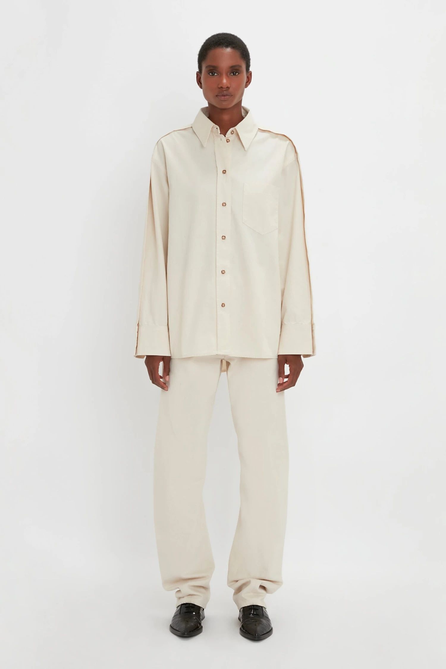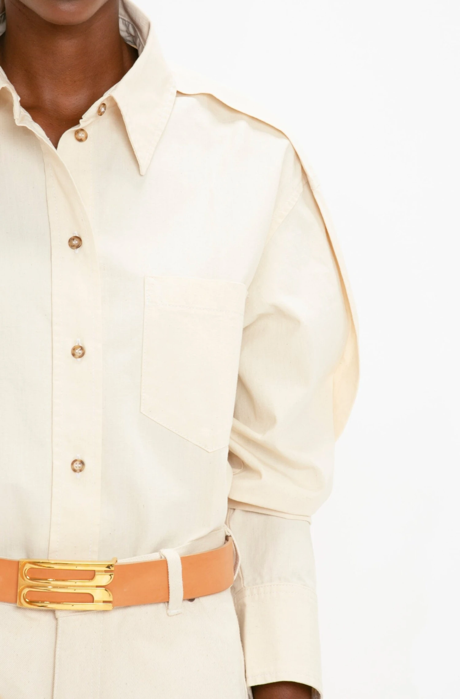 This Pleat Detail shirt offers a fresh perspective on the classic denim shirt. Crafted from 100% cotton for a velvety finish, it has a structured pleat that runs from collar to cuff. The oversized fit creates a laid-back aesthetic and tonal topstitching references its utilitarian inspiration.