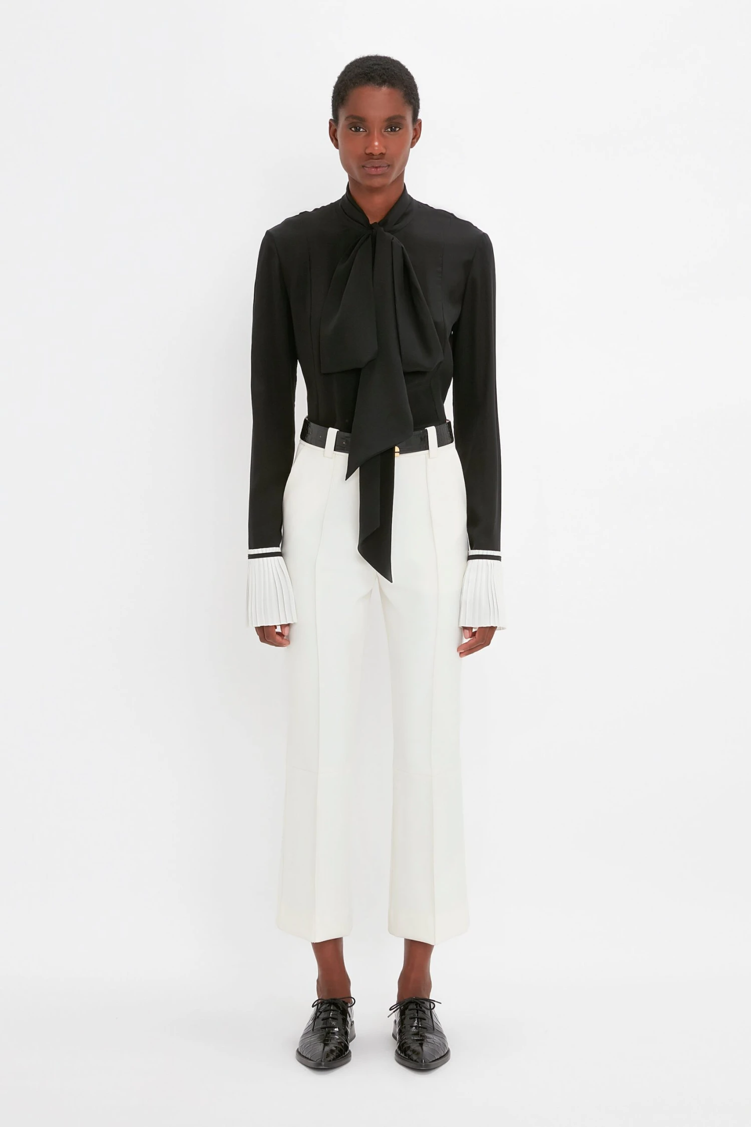 A modern mix of masculine and feminine, these lace-up flats are beautifully crafted from embossed croc calf leather. The sleek pointy toe brings a feminine punctuation to the Oxford brogue-inspired style, and imbues the silhouette with a sharp, well-defined silhouette.