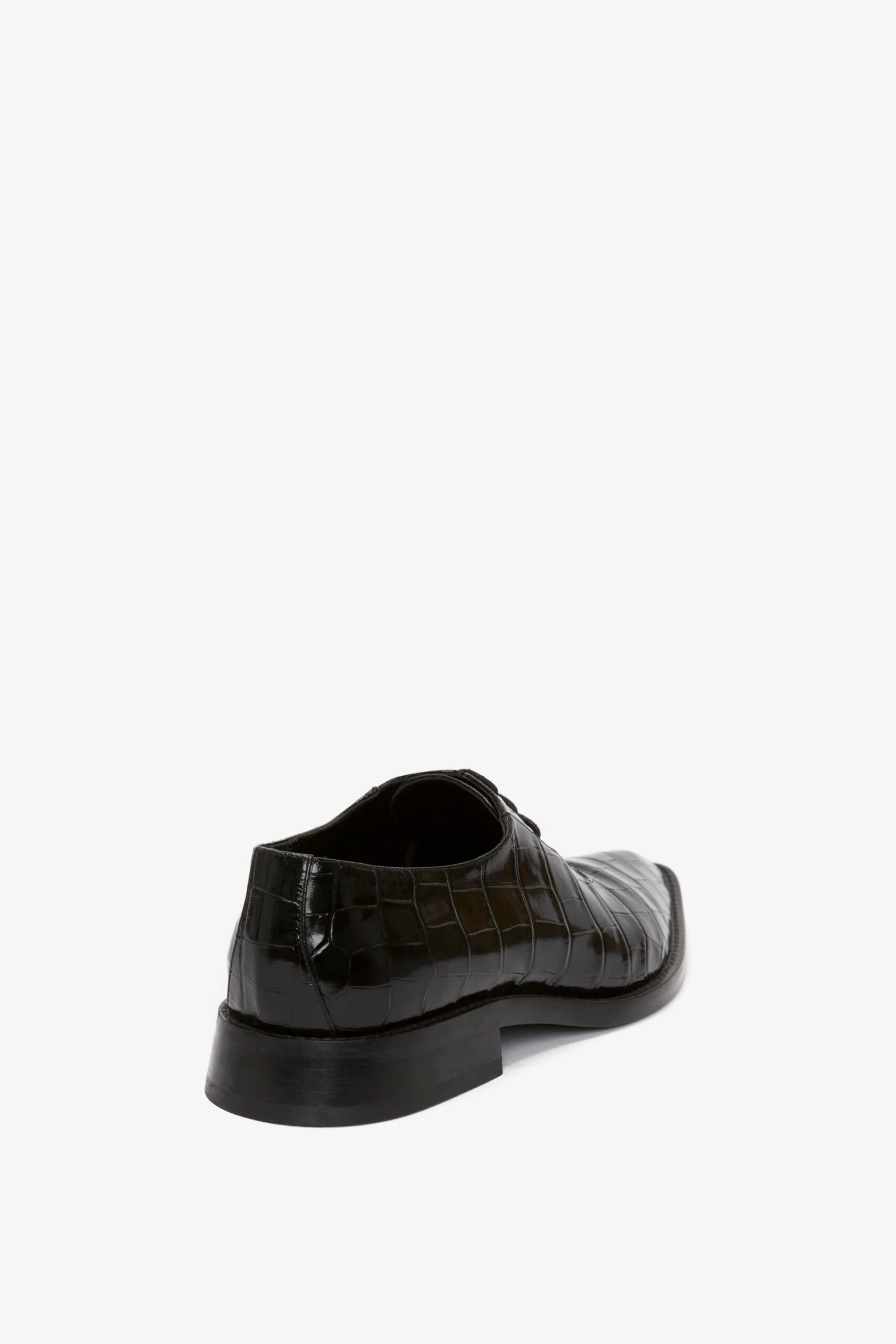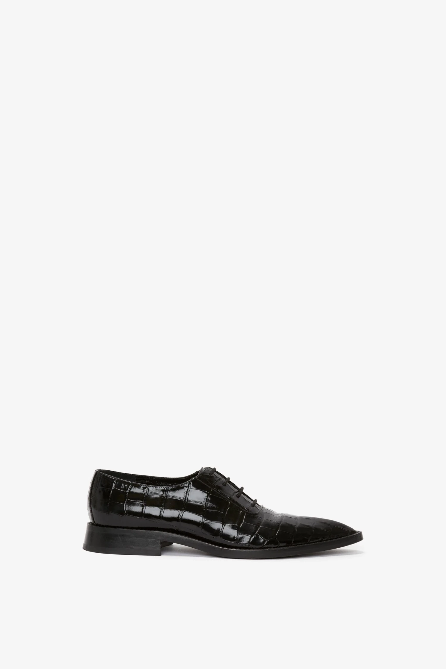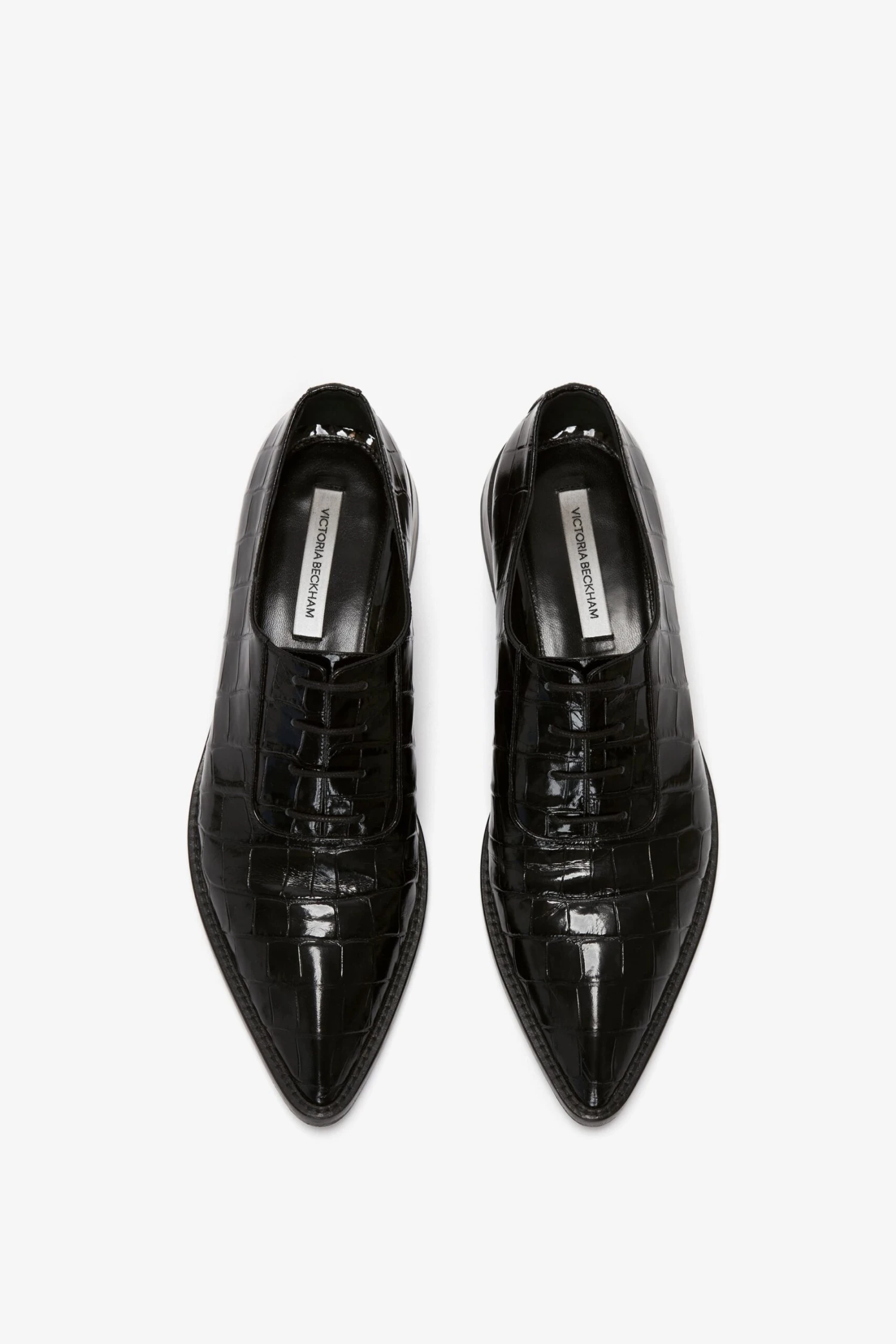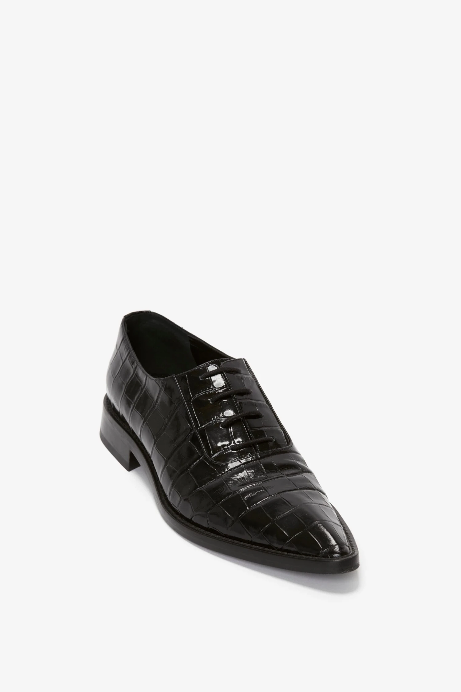 Victoria Beckham Pointy Toe Flat Lace Up In Black Croc-Effect Leather