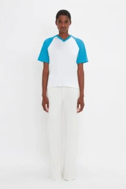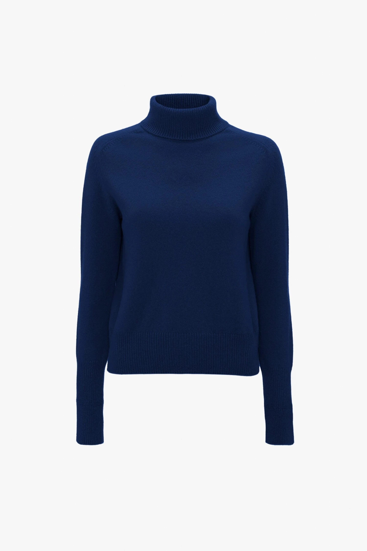 A lambswool polo neck with saddle shoulder design, this textured knit has a contrasting ribbed neck that sits just below the jawline for a dramatic silhouette. A contrasting embroidered Victoria Beckham monogram adds a discrete point of interest.