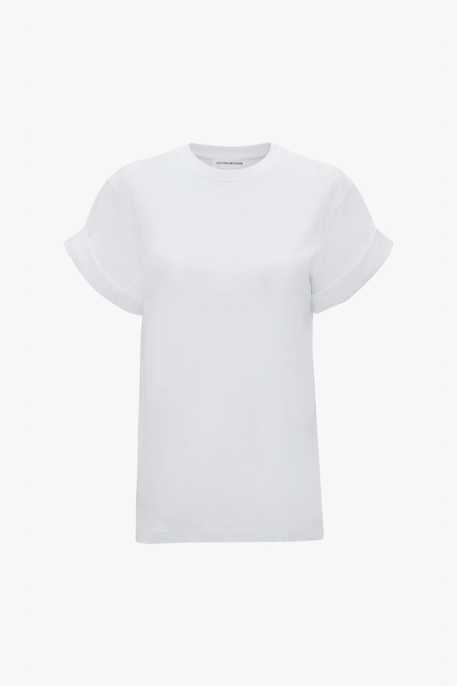 This classic oversized T-shirt has a loose fit for an effortless, laid-back look. Asymmetric folded sleeves add a utilitarian feel, while a contrasting red Victoria Beckham monogram at the back of the neck brings a decorative finish.