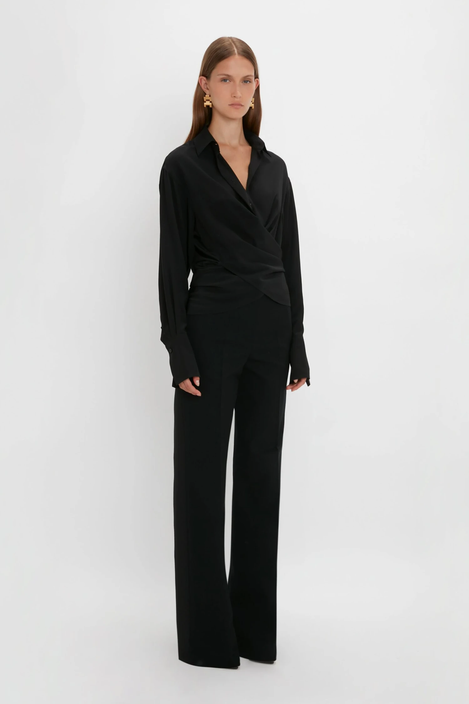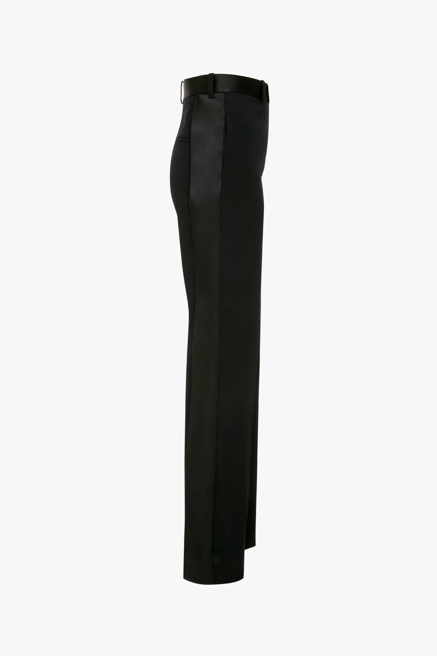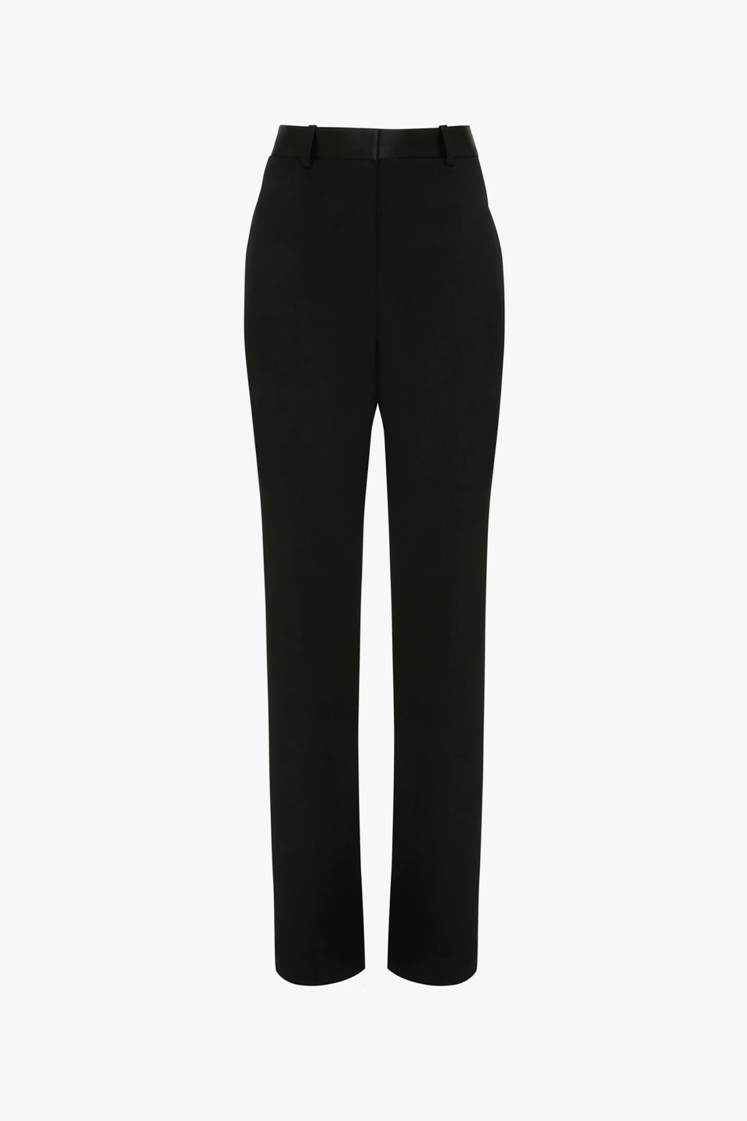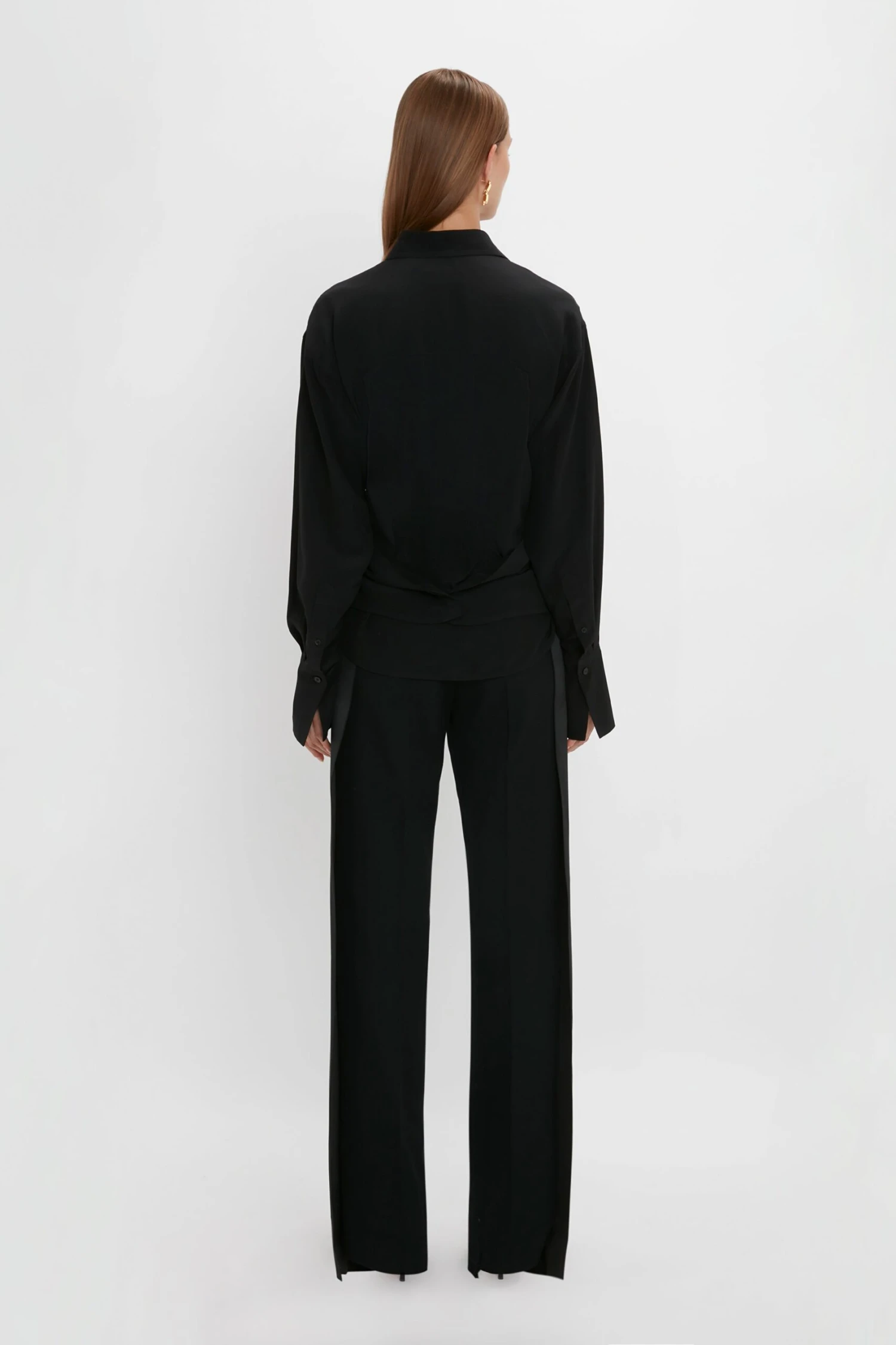 A modern approach to evening wear, these straight-leg trousers have a classic satin tuxedo braid on the outer legs, a satin waistband and satin welt pockets at the rear. A stepped hem detail provides a fresh perspective on modern tailoring.