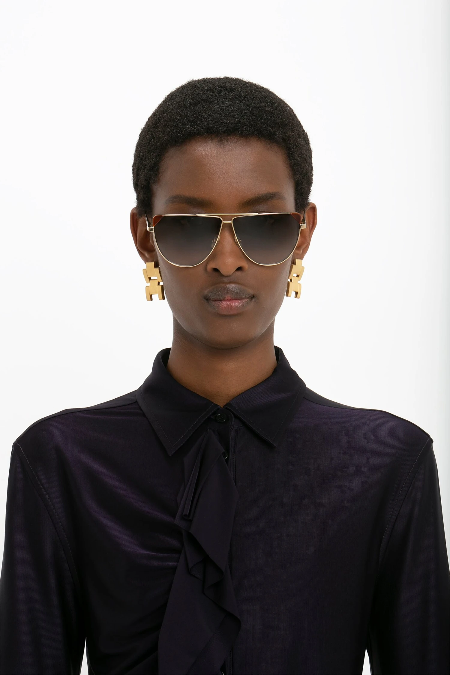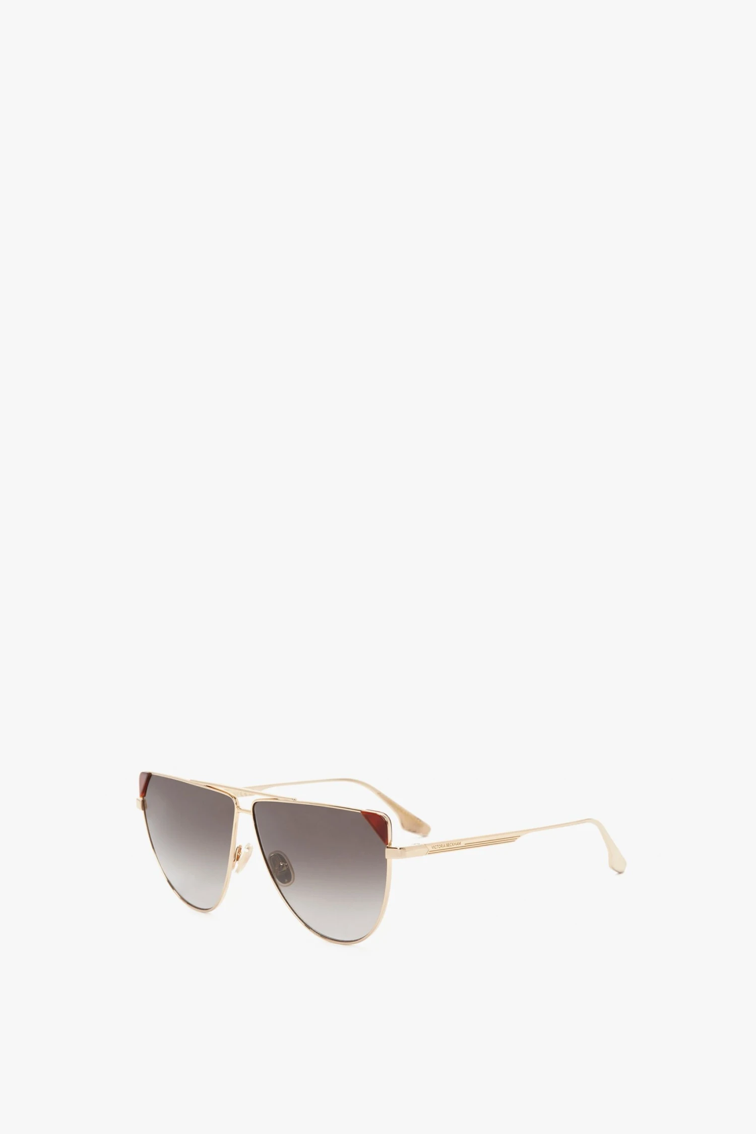 A contemporary reimagining of the popular aviator style, these V Line Aviator sunglasses have 100% metal temples, delicate Gold metal frames and Caramel lenses. A triangular cut-out detail on each lens adds an attractive design feature, injecting a feminine punctuation to this traditionally boyish style of eyewear.