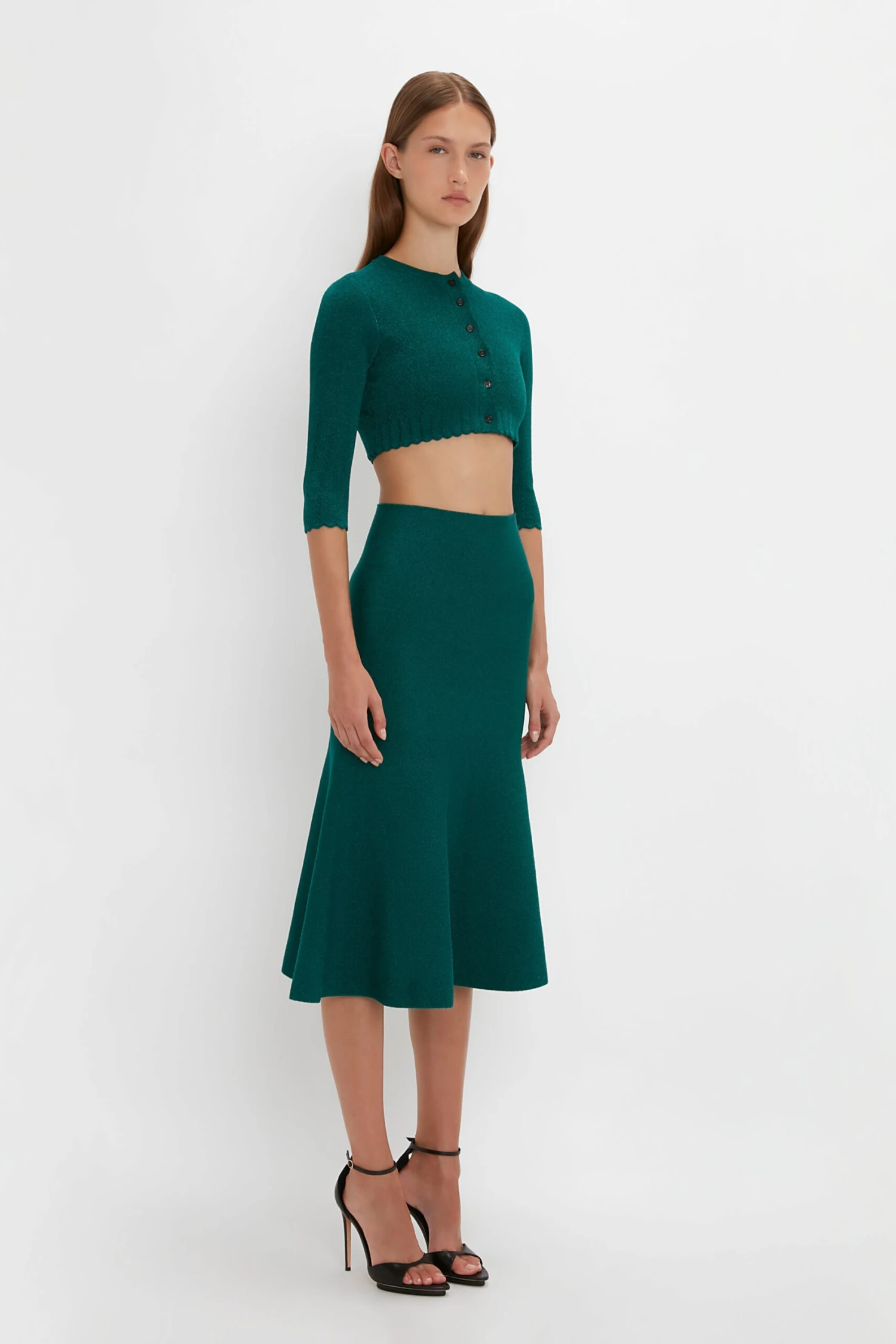 The VB Body Cropped Cardigan is crafted using an exclusive, tightly woven compact knitwear and has a flattering, form-fitting silhouette whether worn open or closed. A crew neckline, elbow-length sleeves and scalloped detailing on both cuffs and hem imbue it with a feminine sensibility. Pointelle stitch detailing adds a refined point of difference.